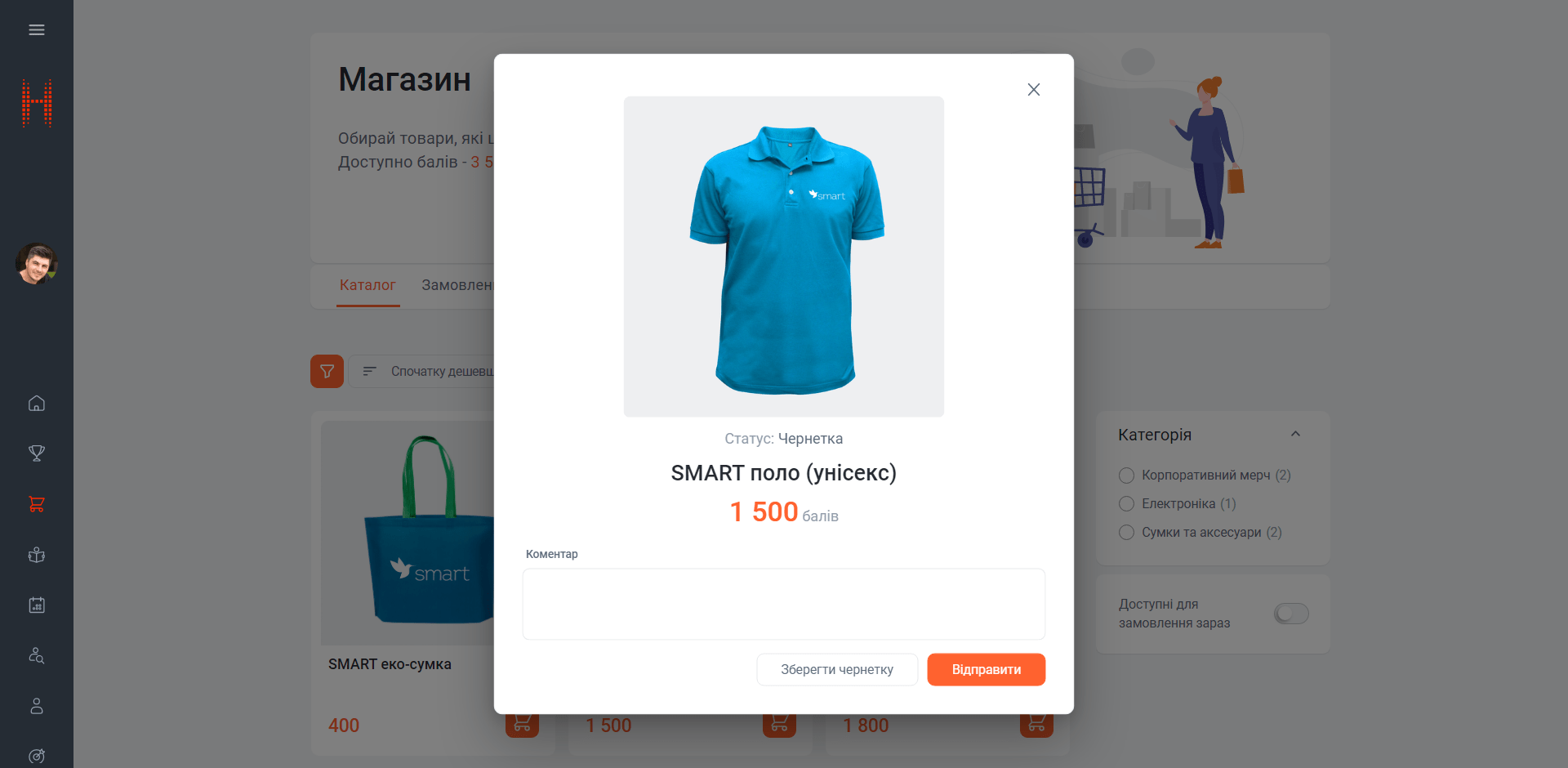 Для зручності ми додали можливість зберігати замовлення у чернетці. Бали не будуть списані з рахунку, поки замовлення знаходиться у статусі «Чернетка».