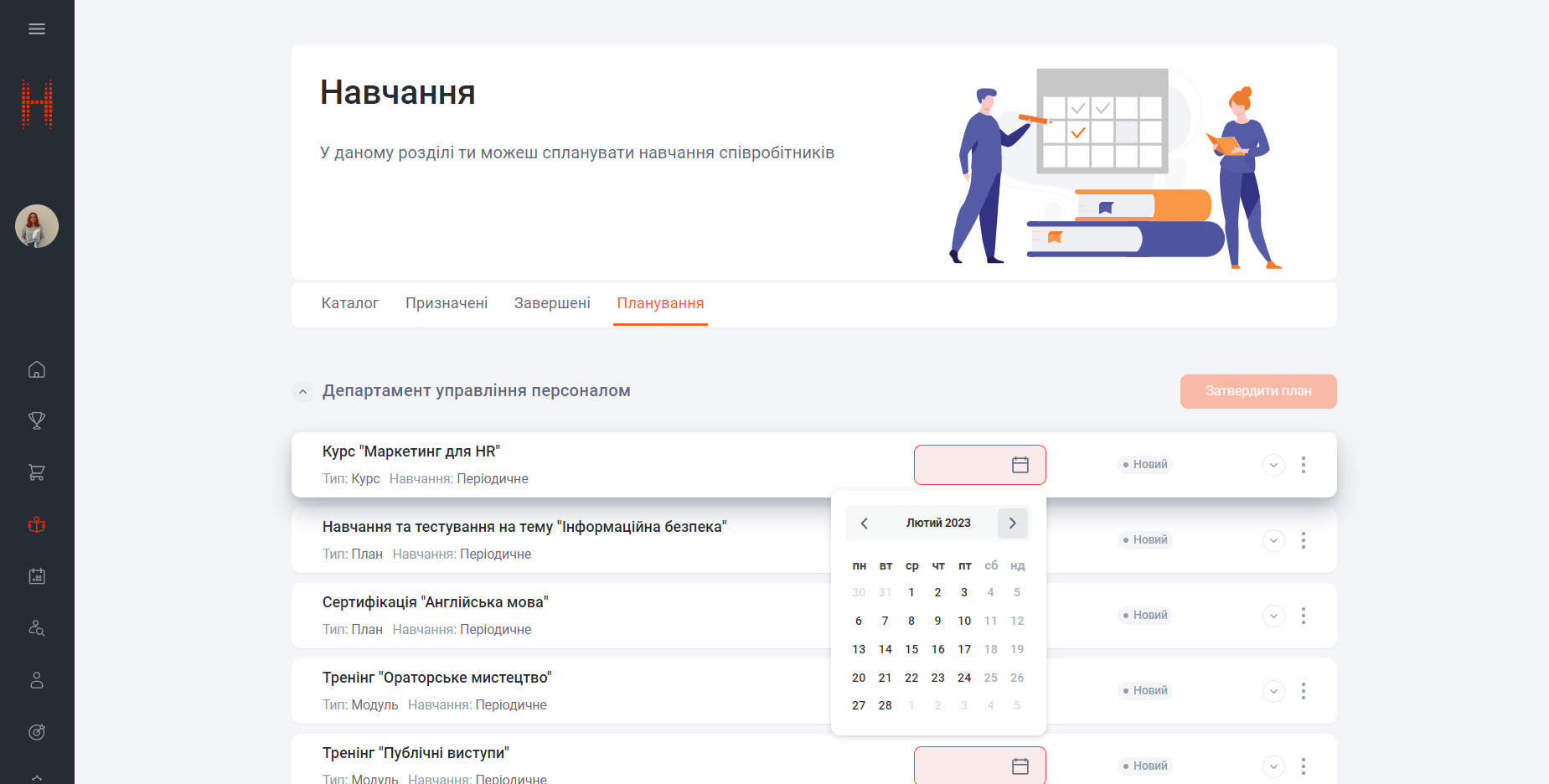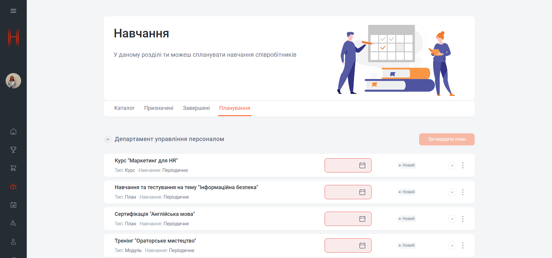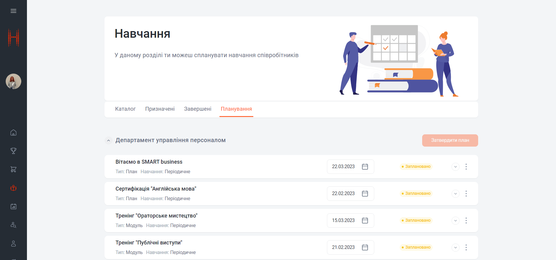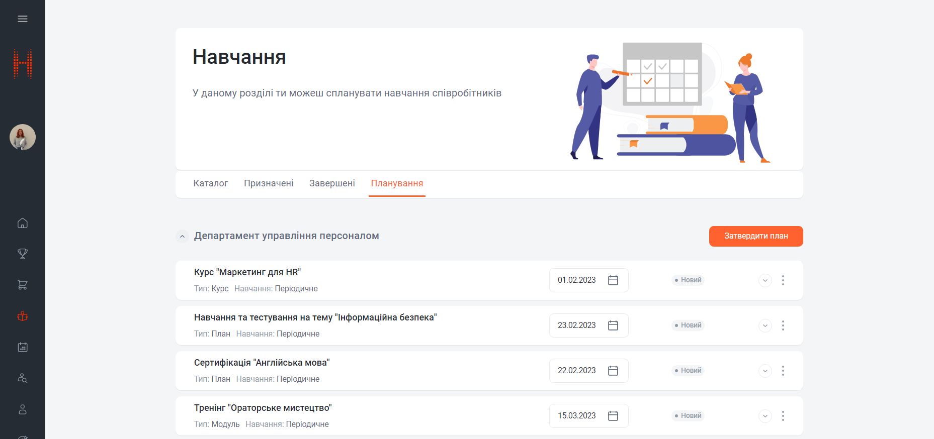 По-третє, ми розробили функціонал коротко- та довгострокового планування навчання співробітників всередині компанії у розрізі місяця, кварталу та року. Такий функціонал буде особливо доречним для компаній з великим штатом співробітників.