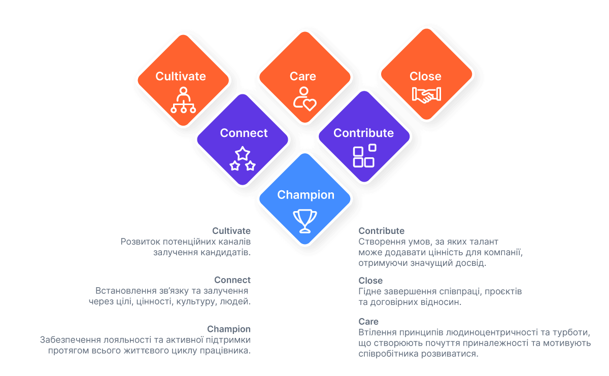 - Розвиток ефективності лідерів компанії та утримання талантів
