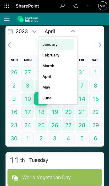 The look of the corporate and personal calendars for mobile and tablet versions has changed: now the list of months and years is displayed in a drop-down list.