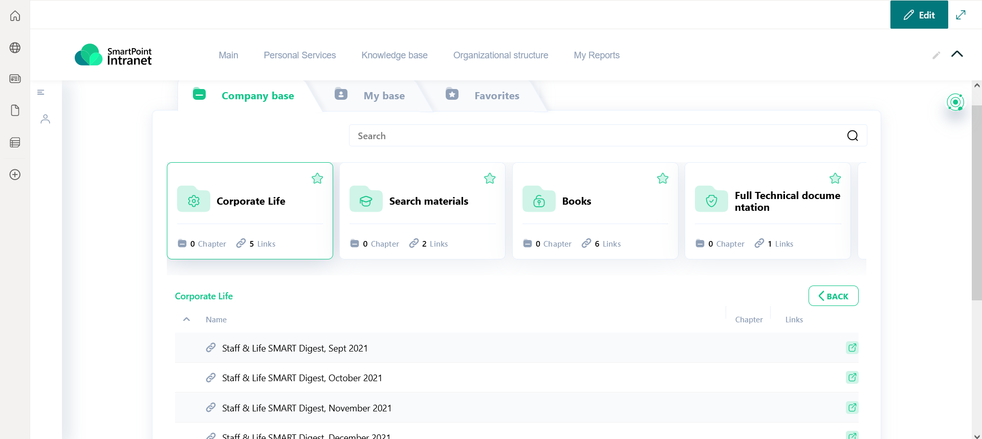 In the Knowledge Base section, you can collect links to all materials, documents and instructions that employees needs in work. And now they no longer need to contact the HR specialist to get answers to their questions, because they know where to look for them.