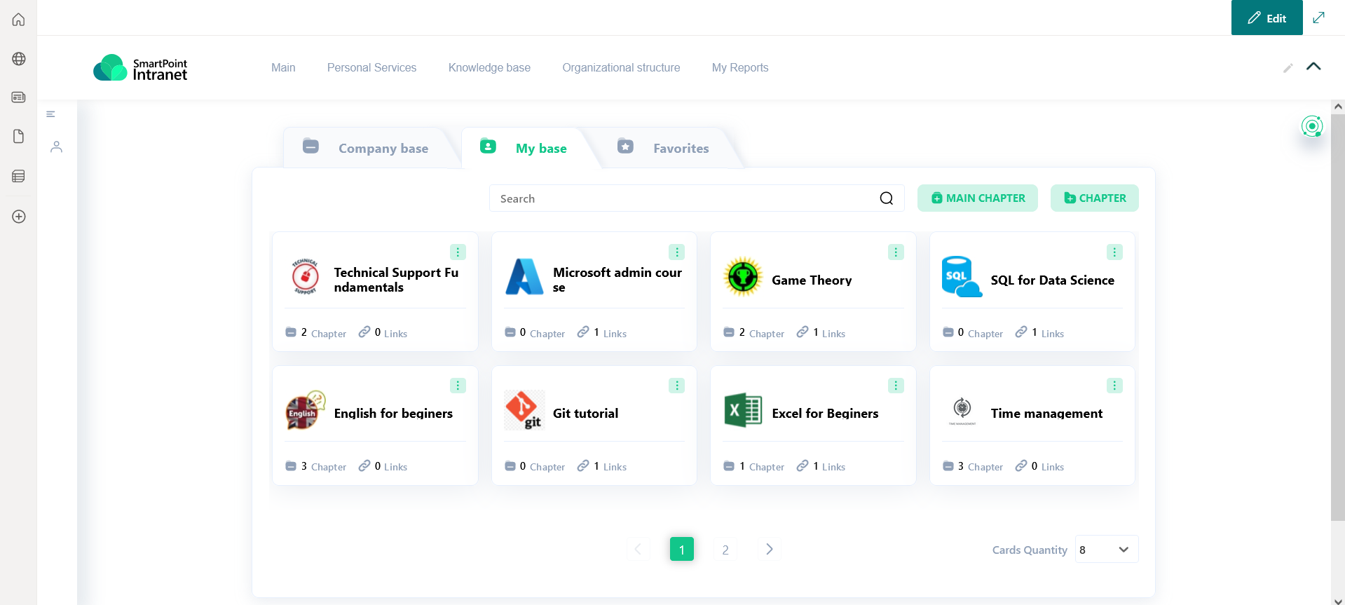 The employee’s personal account on the corporate portal includes a set of services and options to quickly find information related to a particular employee. This is information about payments, vacation balance, as well as other work-related information stored in the Knowledge Base.