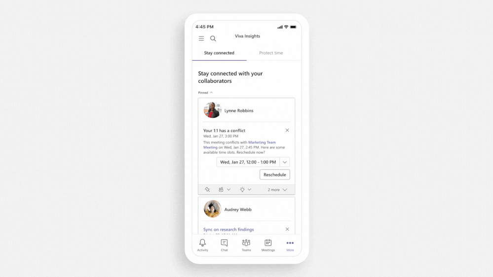 Managers can track information about personnel overload with appointments, insufficient time to focus, regular work outside office hours. All of these insights will inform management staff about the wellbeing of their team members.