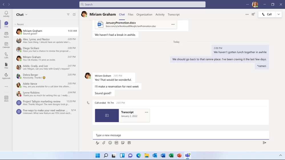 Transcription of one-to-one calls on Teams is now available. This can be enabled via the control bar within the Call window.