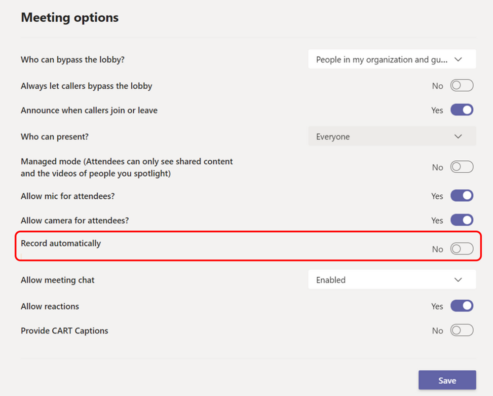 Teams Meetings Auto Recording