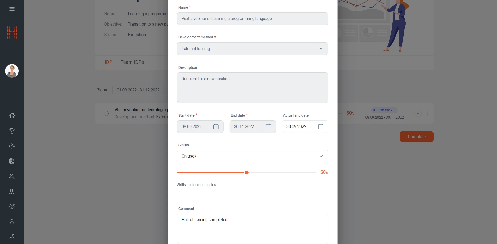 We do not shift our focus and in each release we continue to work on improving the user experience of the SMART HCM & LMS platform. In addition to global functional updates, our team has modified the platform interface using a more modern and faster React technology. Interface improvements have been made to the main page, recruitment and goal setting sections. And the mobile version of the platform has become even more user-friendly.