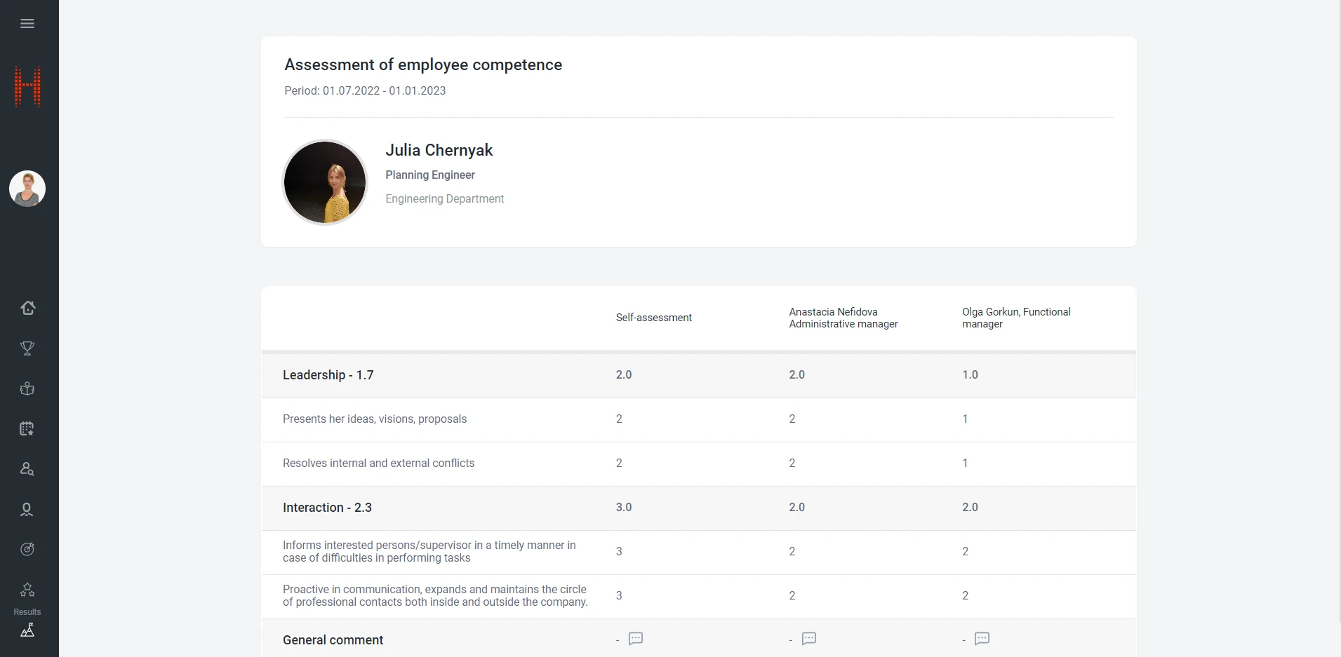 We have added the ability for employees to view the rating area, which reflects the achievements of each employee: