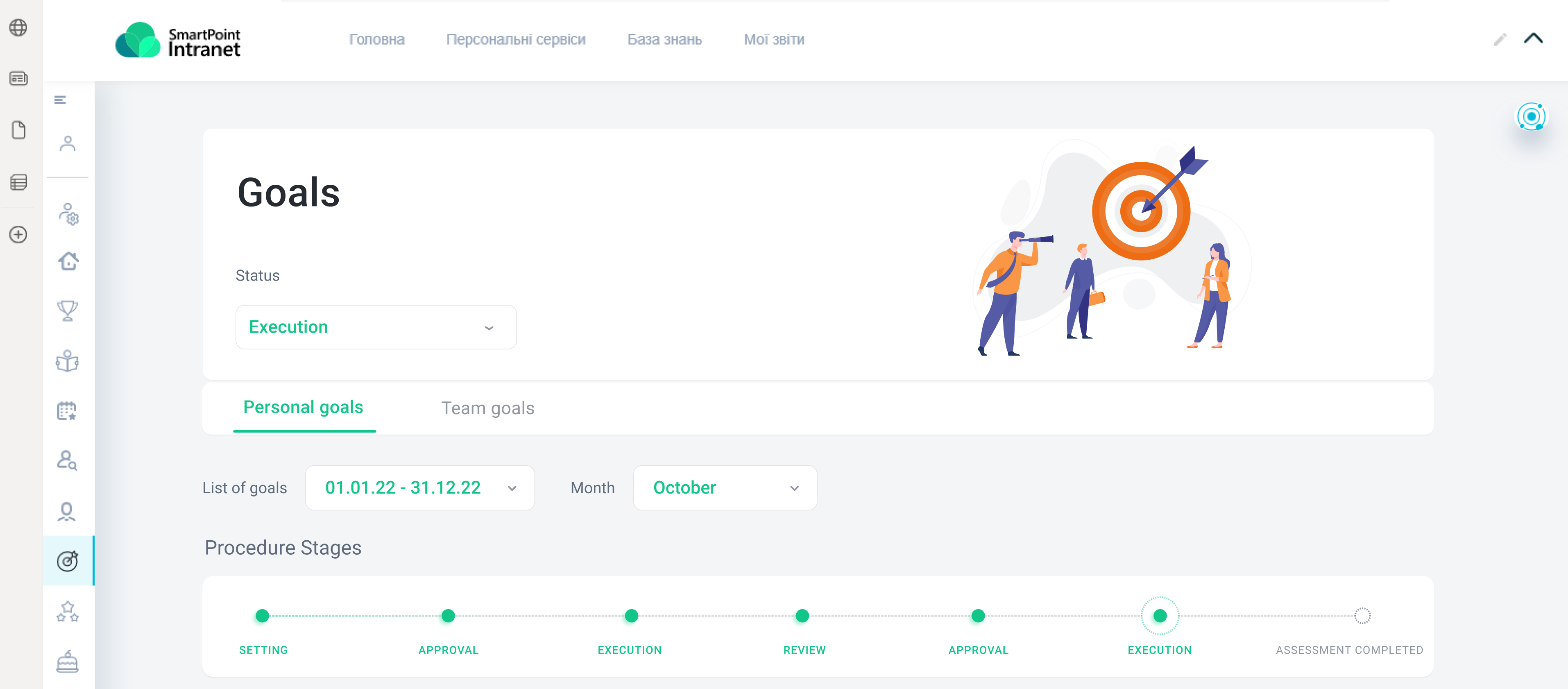 დავუშვათ, რომ თანამშრომელს სურს დაინახოს დღის მიზნები. სხვა სისტემაში ახალი ფანჯრის გახსნის გარეშე, ის გამოიყენებს შესაბამის ჩანართს პორტალში და მიიღებს საჭირო ინფორმაციას რამდენიმე დაწკაპუნებით.