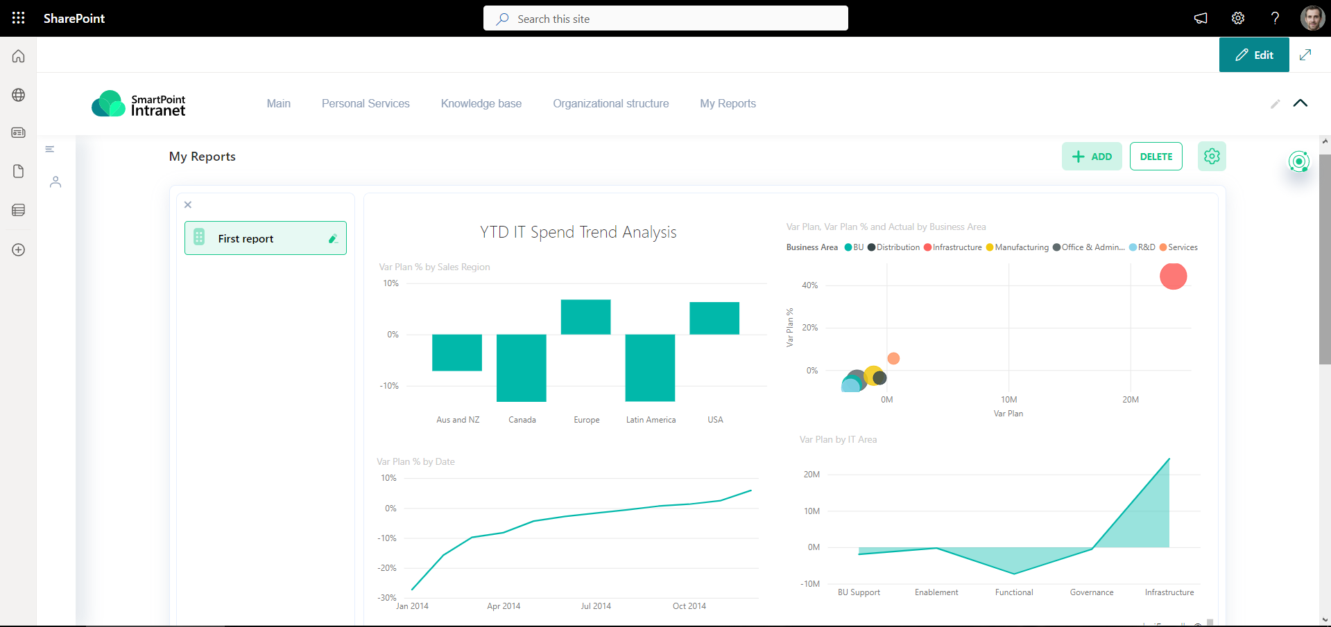 მეორეც, ჩვენ დავამატეთ განყოფილება, რომელიც საშუალებას გაძლევთ ნახოთ Power BI ანალიტიკური ანგარიშები თქვენი პირადი ანგარიშიდან. მომხმარებლებს შეუძლიათ დამოუკიდებლად დააკონფიგურირონ საჭირო რაოდენობის რეპორტები და დეშბორდები თავიანთ ანგარიშში და გადაერთონ მათ შორის ერთ ფანჯარაში.