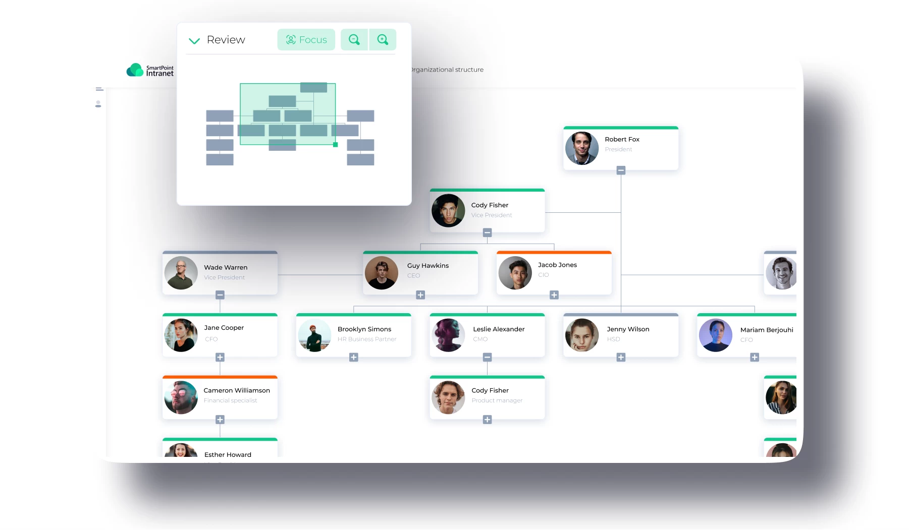 თანამშრომლებმა იციან რომელ განყოფილებაში მუშაობენ, რომელ დეპარტამენტს განეკუთვნებიან, ხედავენ თავიანთი კოლეგების ბარათებს ორგანიზაციული დიაგრამის განყოფილებაში შეხვედრების დაგეგმვის შესაძლებლობით, Microsoft Teams-თან ინტეგრაციის საშუალებით. სხვათა შორის, თუ თქვენი კოლეგა შეცვლის სტატუსს Microsoft Teams აპში, ეს მაშინვე აისახება მათ ბარათზე ორგანიზაციულ სქემაში. თამამად შეიძლება ითქვას, რომ ახალი თანამშრომლები განსაკუთრებით დააფასებენ პირადი ანგარიშის ასეთ ფუნქციონალს.