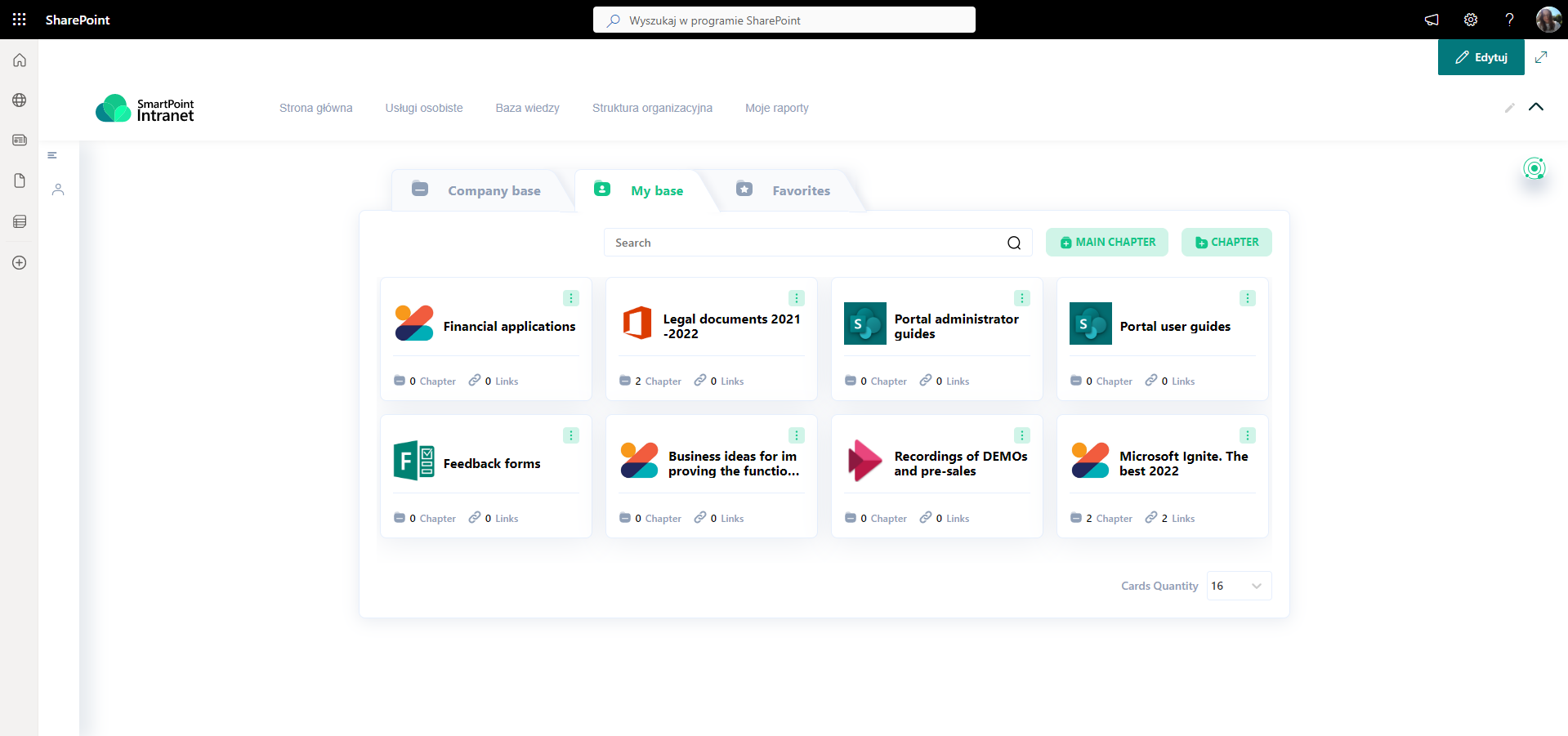 Po pierwsze, rozszerzyliśmy funkcjonalność korporacyjnej Bazy Wiedzy portalu, dodając możliwość tworzenia przez użytkowników własnego centrum kompetencji. Teraz każdy pracownik może umieścić potrzebne materiały w osobnej sekcji.