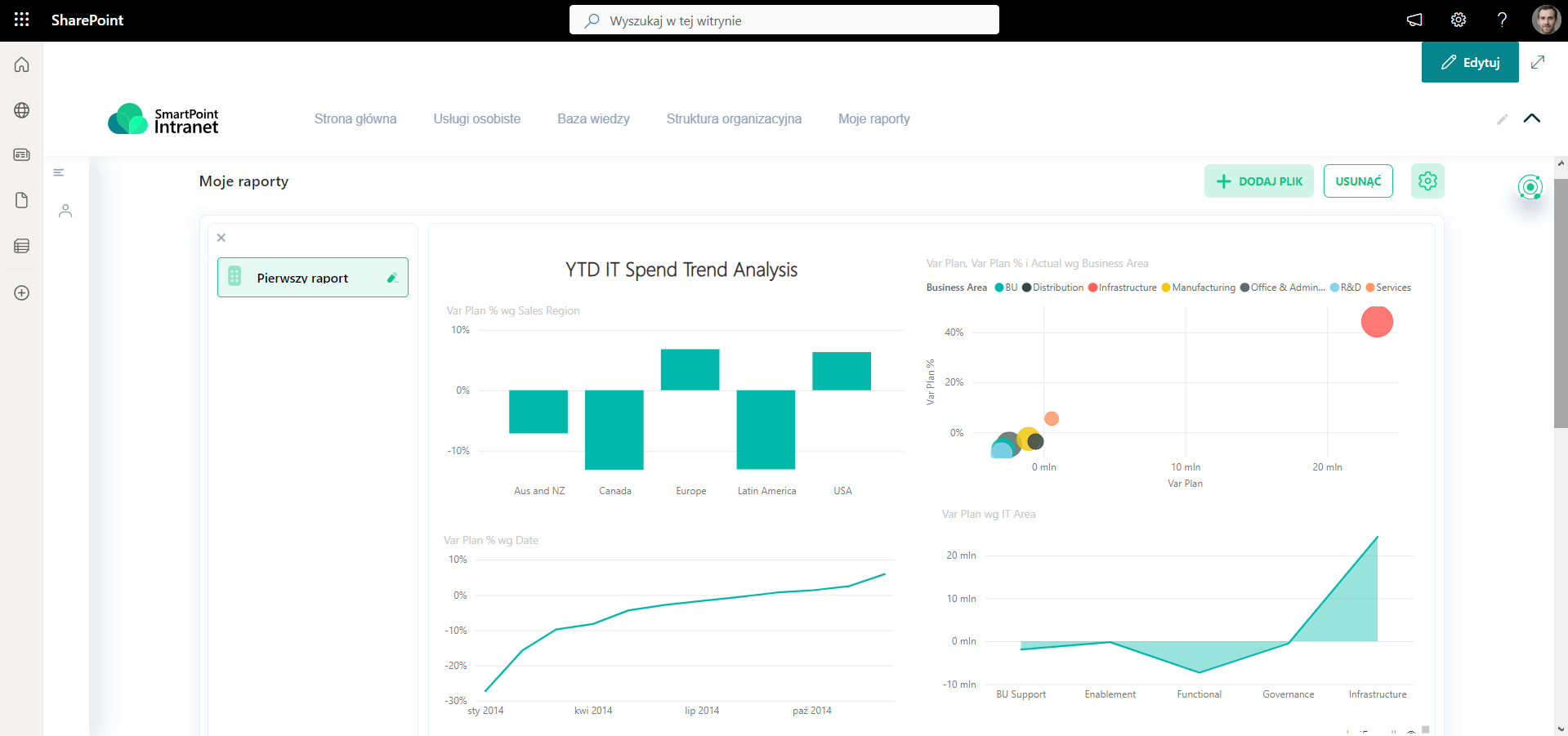 Po drugie, dodaliśmy rozdział, który pozwala na wyświetlanie raportów analitycznych Power BI bezpośrednio z konta osobistego. Użytkownicy mogą samodzielnie skonfigurować wymaganą liczbę raportów i dashboardów na swoim koncie i przełączać się między nimi w jednym oknie.