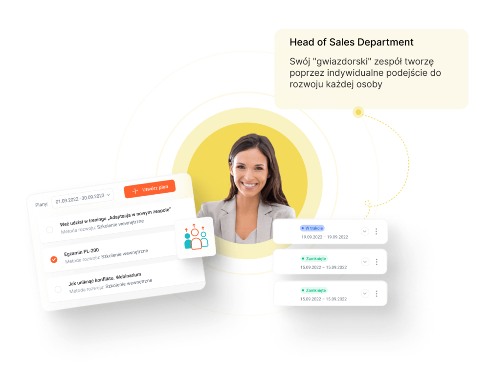 - Szybkie tworzenie i nadawanie planu rozwoju przez pracownika lub kierownika