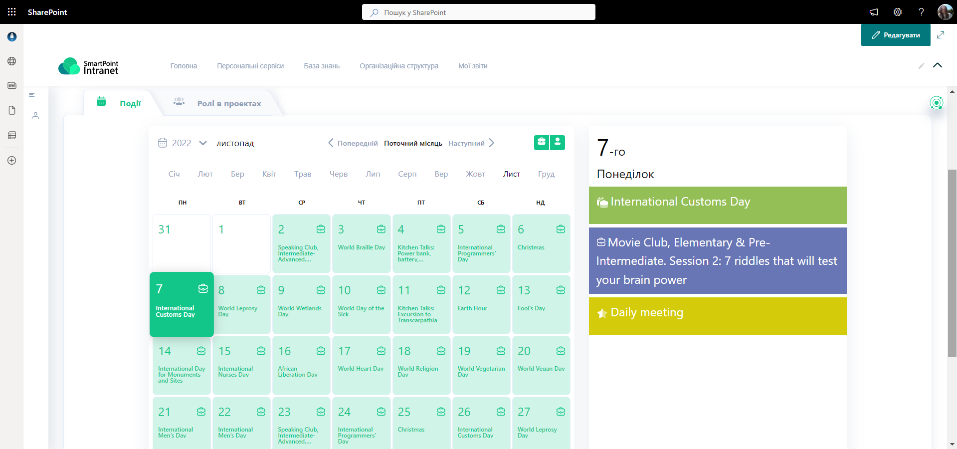 Ми вирішили перенести наш досвід у digital workplace, адже візуальні акценти для багатьох із нас є важливим елементом сприйняття. Тому додали можливість присвоєння кольорового фону для різних категорій подій у корпоративному календарі.