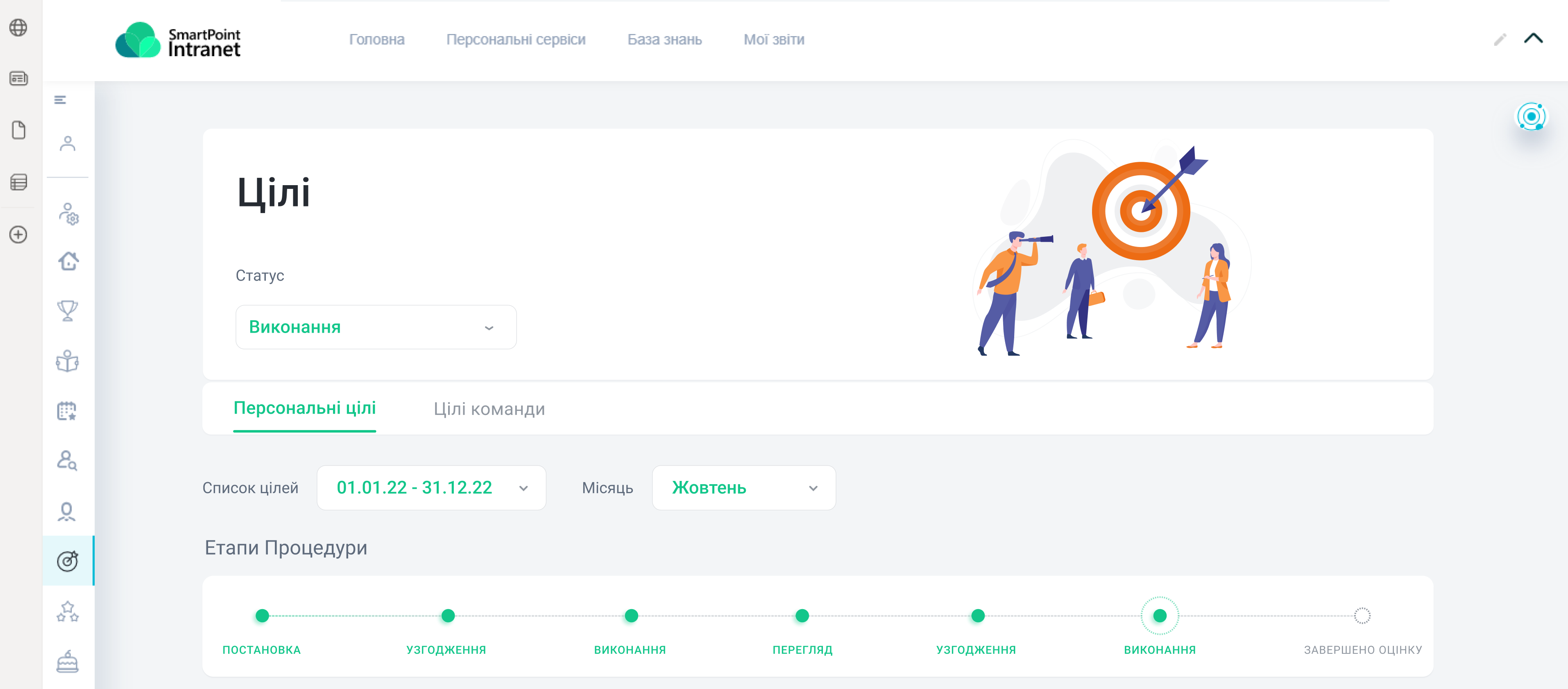 Припустимо, співробітнику потрібно передивитися цілі на тиждень для планування. Немає потреби залишати сторінку та відкривати нове вікно іншої системи. Замість цього він скористається відповідною вкладкою всередині порталу та в декілька кліків отримає потрібну інформацію.