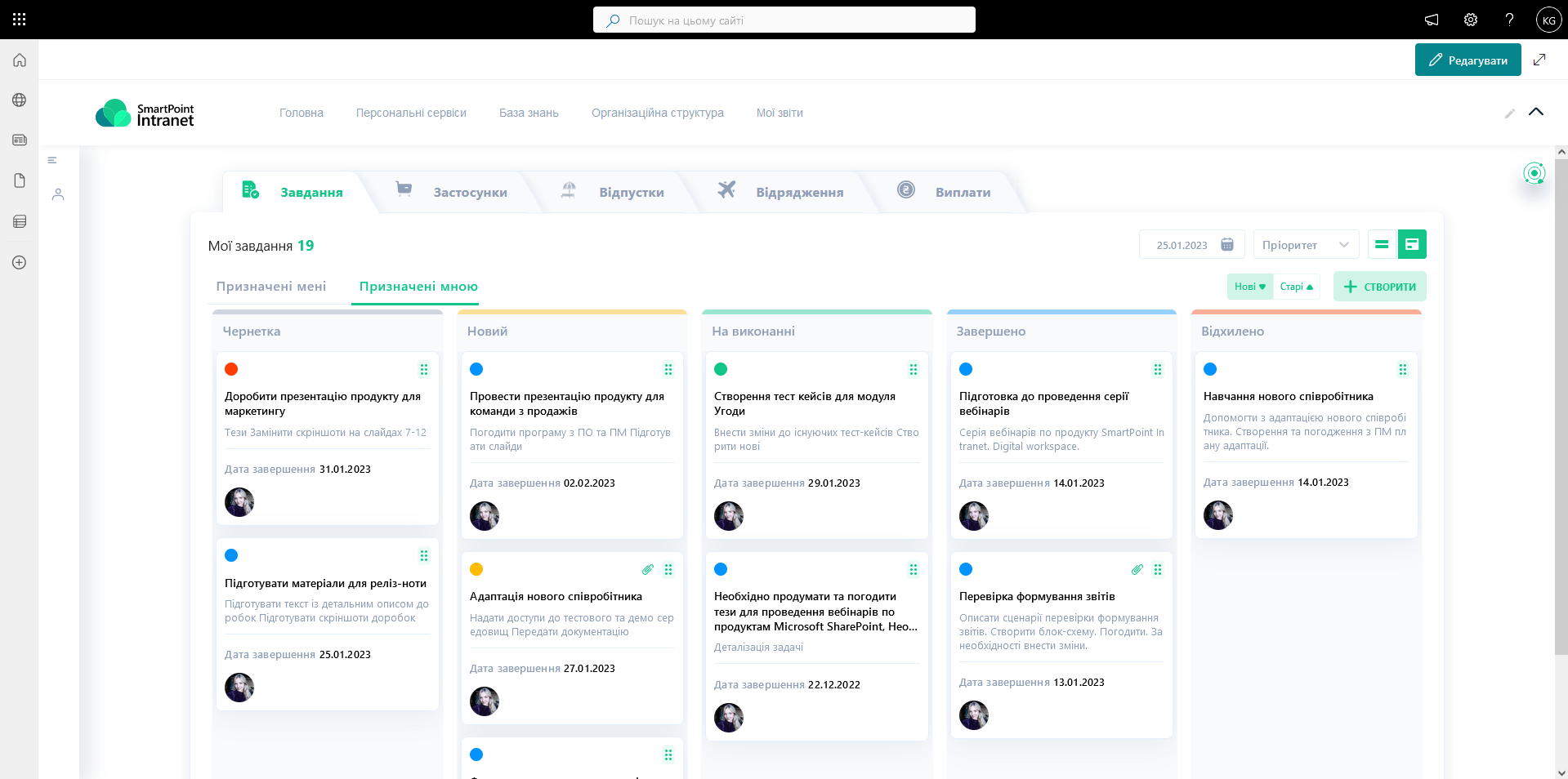 Ми неодноразово чули від наших клієнтів, що карткове представлення task management є візуально зручнішим і краще структурує процеси виконання завдань, тобто пропонує більш системний підхід до виявлення можливостей підвищення ефективності роботи команд. Тому в цьому релізі вирішили реалізувати канбан у SmartPoint Intranet.