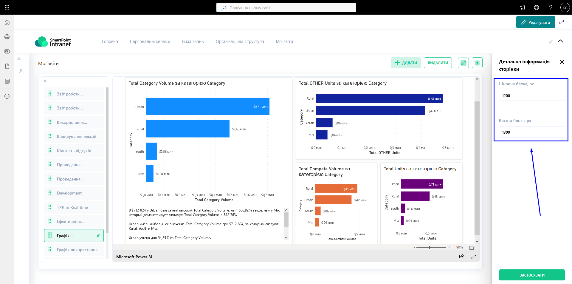 Щоб встановити необхідну висоту та ширину відображення звітів, необхідно в області, що відповідає за налаштування параметрів заповнити відповідні поля.
