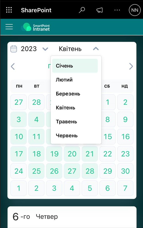 Змінено вигляд корпоративного та персонального календарів для мобільної та планшетної версій: тепер перелік місяців і років відображається випадним списком.