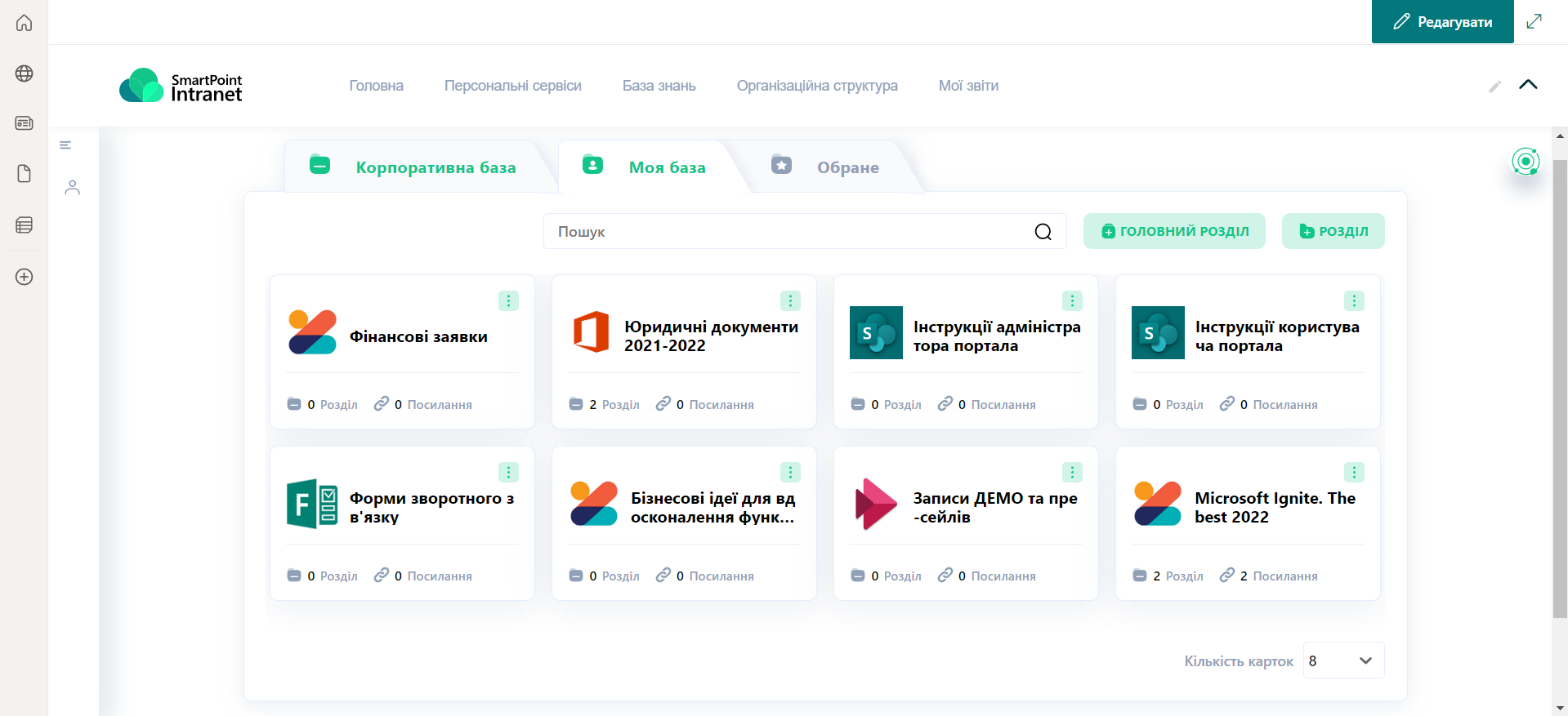 Наприклад, такі інструменти корпоративного порталу SmartPoint Intranet як Персональний кабінет та Персональні сервіси дозволяють співробітникам самостійно:
