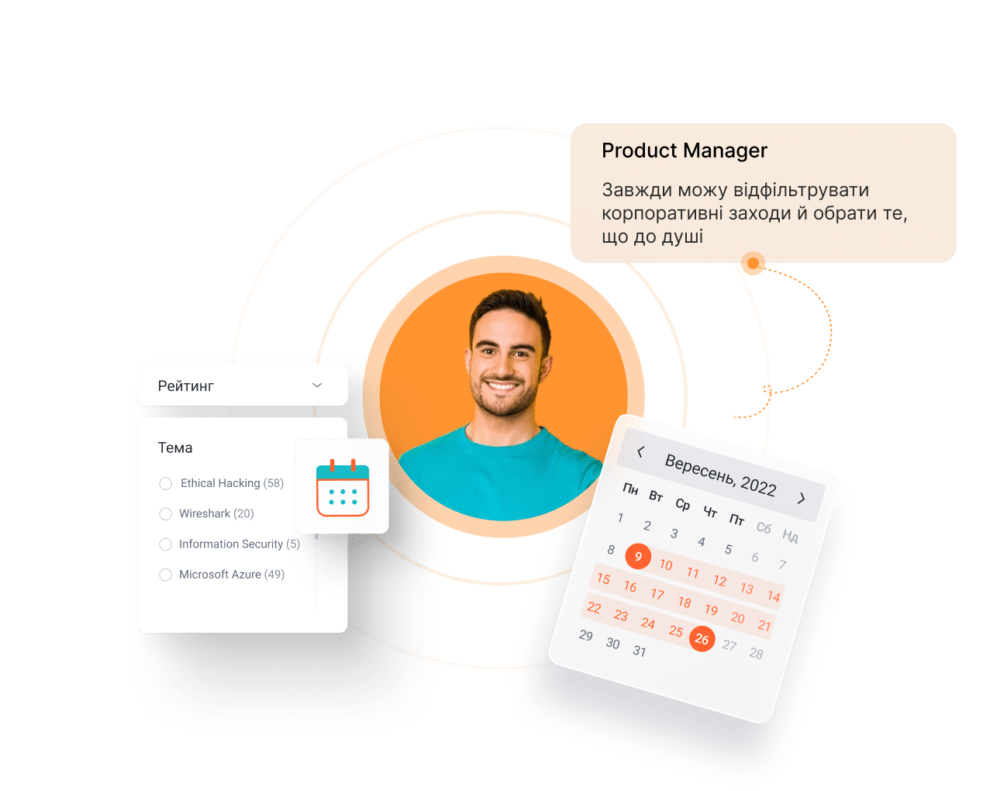 Запрошуйте співробітників до участі у корпоративних подіях компанії, управляйте активністю та залученістю співробітників